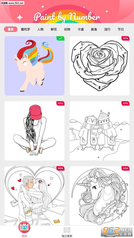 一款非常治愈解压的填色游戏,精美的游戏画面,玩家可以选择喜欢的图案进行上色,屏幕下方将给出不同的色彩,并且给予提示,可以挑战的图案关卡非常的多,欢迎进入游戏体验!
