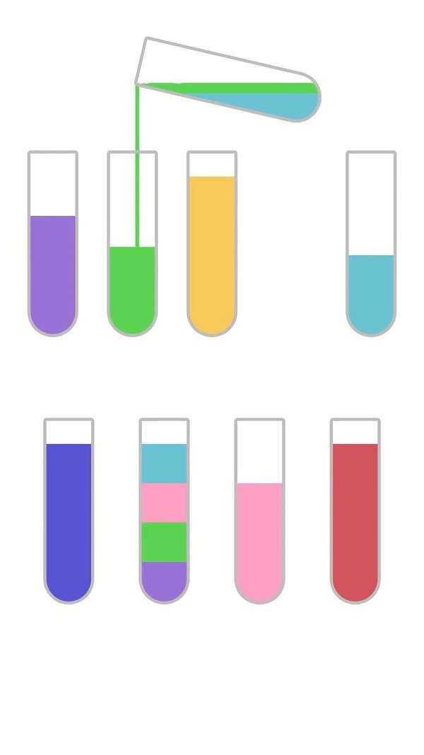 需要注意的是,只有当目标玻璃杯中有相同颜色的液体,并且有足够的空间时,才能进行倒液操作。