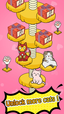 您购买,合并和管理您的猫。你点击它们触摸它们,喂它们,让它们开心。你可以增加猫的情绪,这会增加你的收入,从而获得更多的黄金。