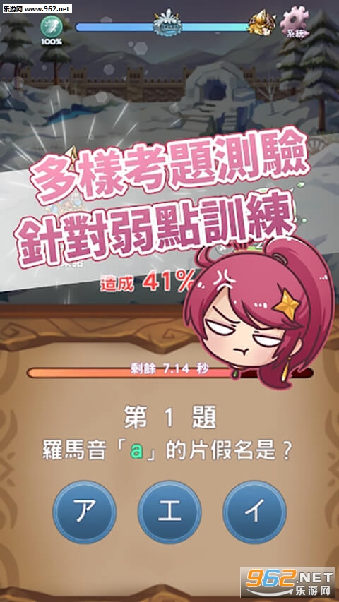这是以奇幻冒险为主题的日语50音学习游戏,玩家可操控三位英雄,在试炼森林中挑战魔物与Boss,藉此训练日语能力,且三位英雄分别掌握假名、读音、听力三种测验,玩家可依自己需求选择对应的英雄来并肩作战,也可以强化喜欢的角色、喜欢的天赋使自己茁壮,是非常适合做为50音练习的游戏哦!