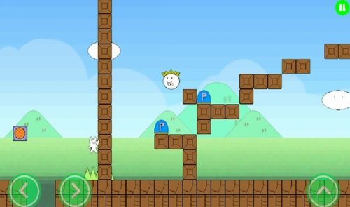 3、终点前有三个方块,先顶第一个再顶第三个,怪物会把毒蘑菇向右丢,把假猫毒死。