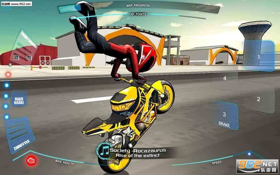 3游戏模式自由运行,最长的stoppie挑战与碰撞测试的挑战。