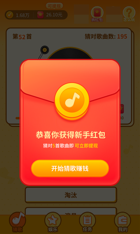 3. 独特的前奏猜歌机制,成功闯关即可领取红包奖励,每日任务充满挑战性;