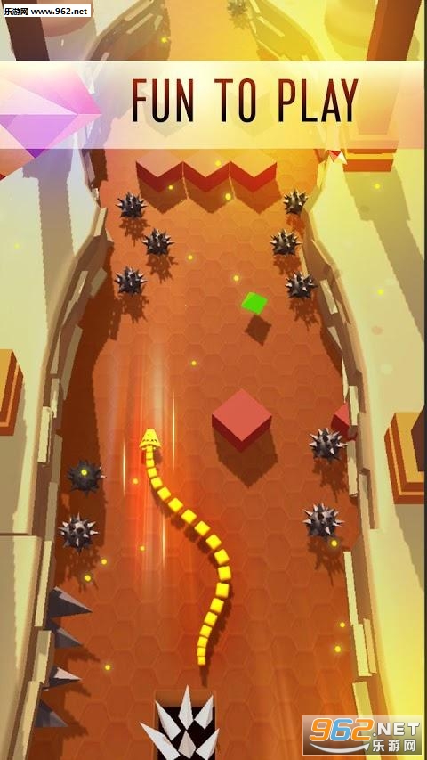 这是一款将贪吃蛇和障碍躲避结合到一起的游戏,操作挺简单的,但是你的前方有很多的陷阱和机关,而且它们还非常的坑!我们控制这这条小蛇在峡谷之中前进,峡谷的两边长满的尖刺,前方也有很多的危险,需要在躲避的同时尽可能的多吃点食物,让小蛇变的更长。