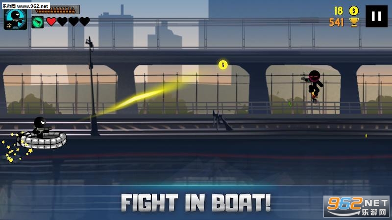 《火柴人军人:暗影之战》是一款十分刺激的横版射击手游,扮演火柴人战士,驾驶小船在水面上极速狂飙,灵活走位避开各种攻击,火力全开消灭所有拦路的敌人,完成作战任务。喜欢的小伙伴们赶紧来下载吧!