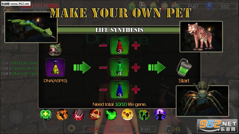 3.你的宠物也是怪物猎人,它们会给你带来极大的伤害,它们也需要成长,猎物怪物可以升级为宠物,狮子,老虎,美洲虎可以在游戏中获得,恐龙需要付出要得到。对于不同的怪物或僵尸,不同的宠物有不同的效果。这些需要在游戏中找到。