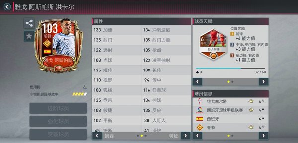 也就是说明什么,新卡会比以前的卡强很多同样的103也有天赋一样的,但是数据了不一样,也就说新卡会慢慢的把以前的卡给淘汰掉,以前卡的都要慢慢换下来,我们拿这个奥巴梅扬来做比较,天赋是速度,但是现在的卡基本不差速度,也就说天赋比较废。特性铁人还不错,马赛,187手感不错(我用过) 和莱万比的话我觉得莱万更强,