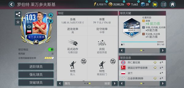 莱万多夫斯基数值不高但是呢你认真看一下,这个卡能算的上一张好卡了