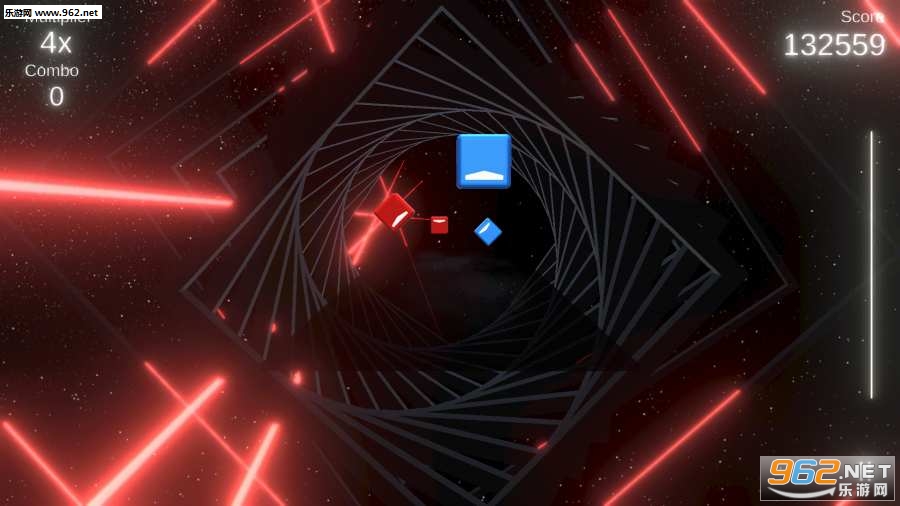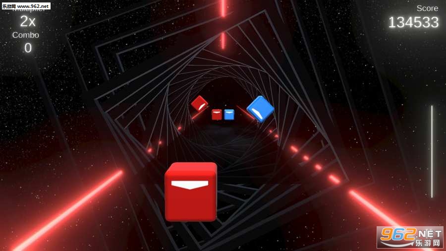 1.纯发泄的游戏,跟随音乐的节奏切割立方体,挑战玩家手速;