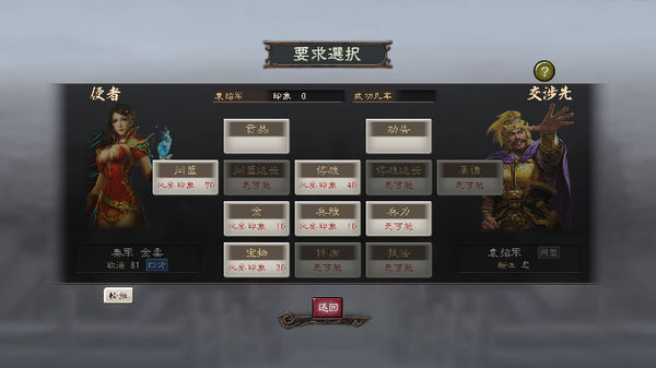 1、劝降:他国君主的义勇以及与你的相性有关,另外君主亲自劝告增加20%成功率