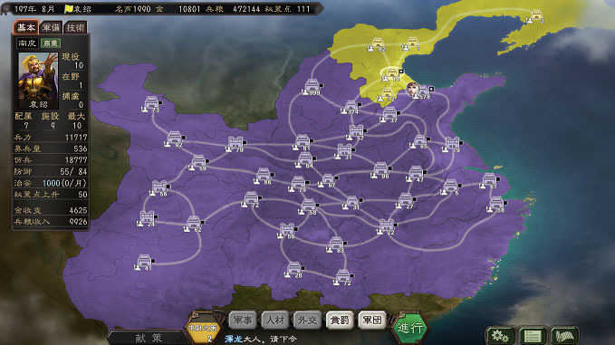 10、军师的任命是你最近收到的一个智力在90以上的人来担任,如果你让他去研究秘策或者运输或者外交什么的就会换智力最高的人来做军师