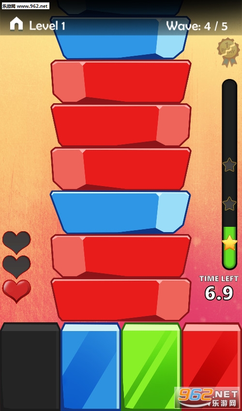 《彩色水龙头安卓版》的英文名字是Color Tap,是一款比较不错的休闲娱乐小游戏。游戏的玩法非常简单,根据颜色按钮消灭水龙头一样的彩色块就好了,每一关会有三滴血,点错一次扣一血,游戏有时间限制。