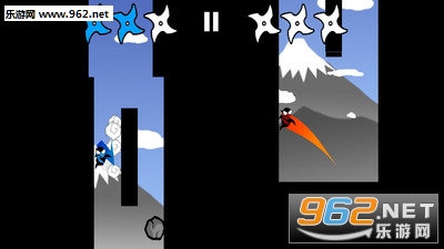 1、玩家操作忍者在两边的平台来回跳跃躲避障碍物。