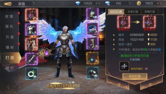 玩家可对已穿戴的装备进行打造,打造会额外加成装备基础属性,只有激活vip的玩家可进行打造。这里就是彰显VIP身份的时候啦,不同VIP等级可打造的种类不同,钻石vip可进行钻石打造,王者vip可进行王者打造,至尊vip可进行至尊打造。不同打造需要消耗不同道具,在更换装备时,已打造的等级会自动继承到新装备上。
