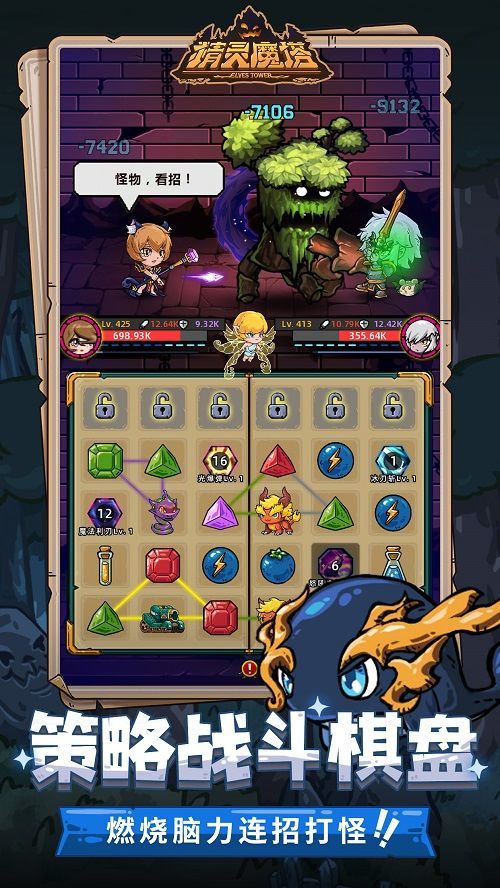 同时,你还得去解救精灵,与宝石重新连线,为登塔打Boss进行助攻。时机,位置,合成……多样要素,丰富打法,给你脑力破关千层魔塔的持续快感!