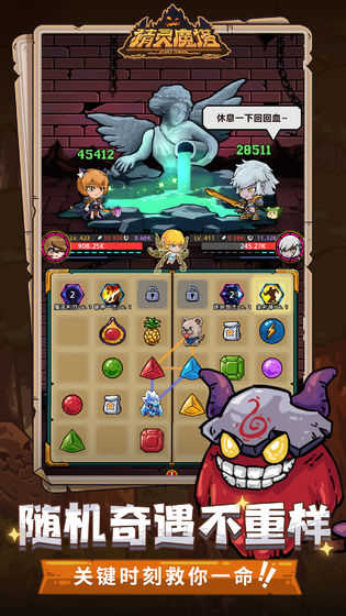 在爬塔旅途中,你可以随意选择房间,进入未知下一层,等着你的是迷途的勇者伙伴?是超稀有材料?还是狂虐你的大Boss? 这一切,由你自己去体验。
