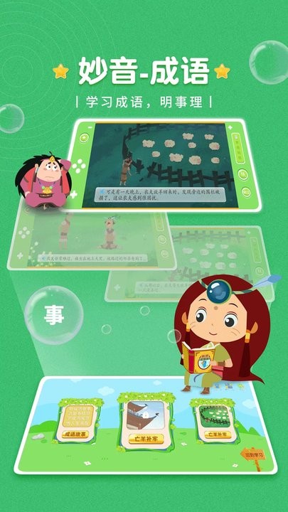1.妙音成语APP是一个专为儿童打造的国学经典成语故事启蒙软件