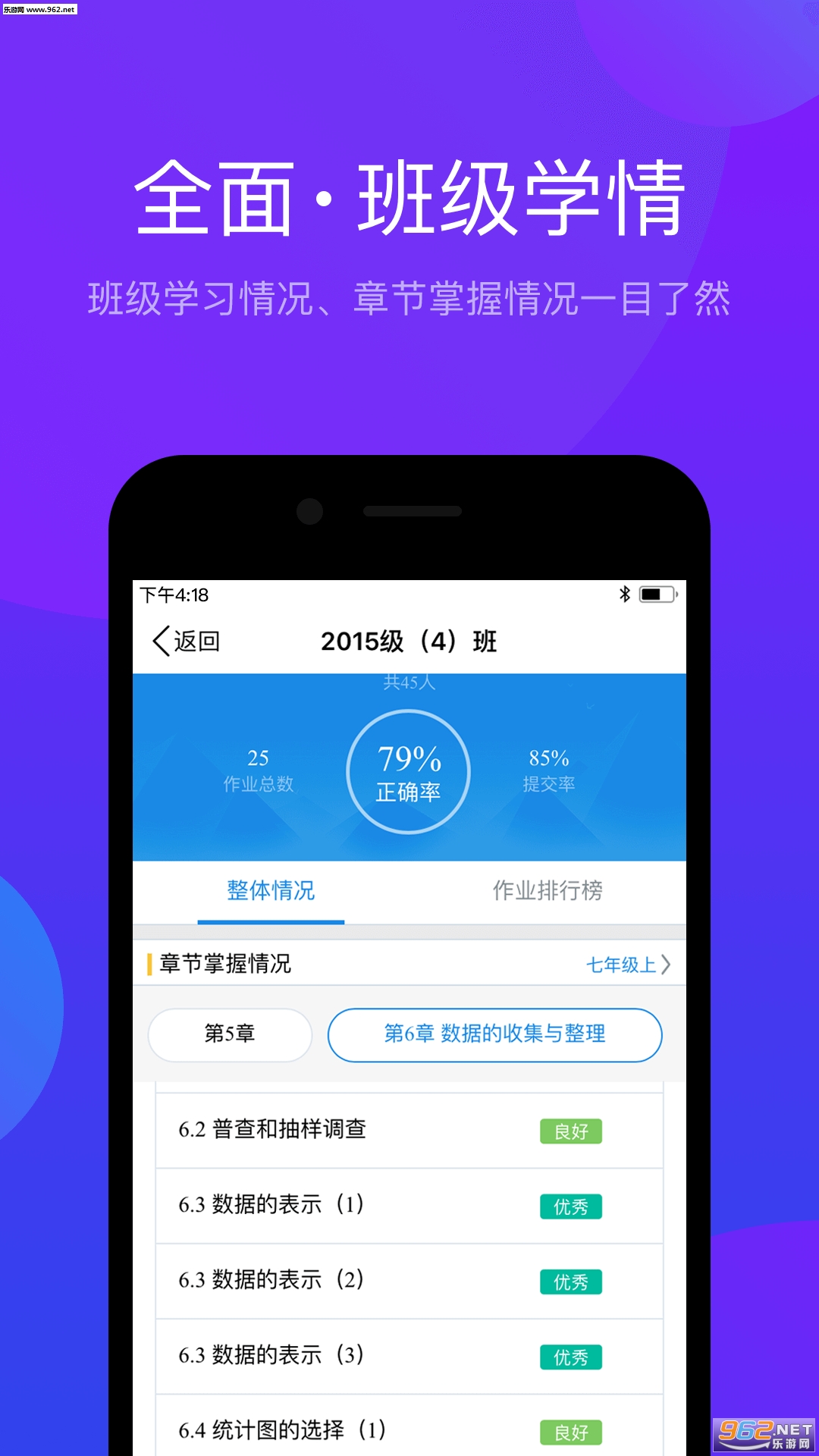 4. 作业统计分析 每次作业都会对学生成绩、作业中的错题、知识点掌握情况等多项数据进行统计分析,立体化展现作业情况,从此实现对学生的个性化指导