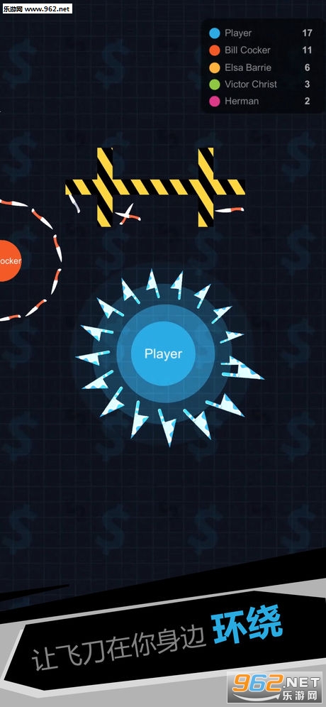 一款创新玩法的.io类游戏,通过对一大堆飞刀的熟练操控来进行混战,独创的龟缩防御机制(俗称王八状态)让你能轻松秀死对手。