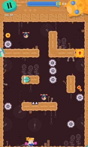 玩家尽量让自己别碰到齿轮和地刺,后边的关卡可能会有更高级的陷阱,注意躲避;