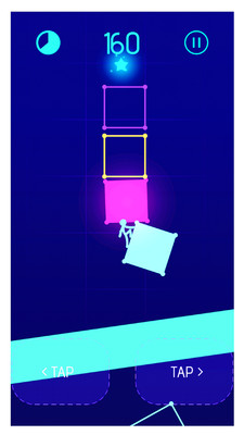2、游戏规则很简单,只要火柴人成功的着陆到一个方块上面,这个方块就会被点亮,然后继续想下一款跳跃。
