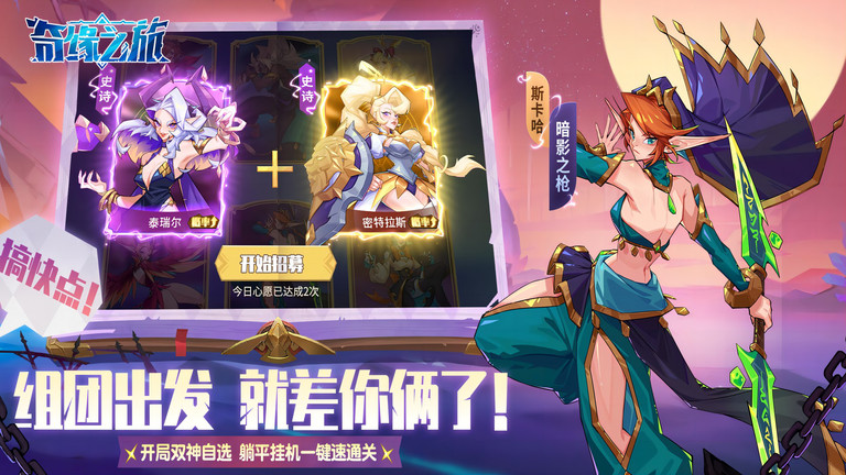 握星待启动 出发在即!《奇缘之旅》是一款美式奇幻卡通风格的三棋盘放置卡牌。为了拯救哥哥,年轻的小王子探秘“魔方世界”,意外发现哥哥已被魔化,无奈踏上寻找哥哥的复仇之旅……游戏开局每天都有新增玩法,护肝放置,摸鱼首选,如果喜欢放置策略卡牌,不妨试试这款宝藏游戏~ 不止战斗4倍速,第一天就能解锁一键通关,龙塔等多副本可战力碾压,解放双手速度通关。后期还有旅行管家玩家可以托管完成日常打卡,不再需要重复每日行为,是不是爽翻翻。