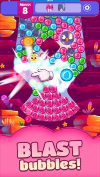 游戏颇为轻松,就是弹泡泡,组合强化道具。只需轻按即可弹爆一组颜色相似的梦幻泡泡。立刻弹爆足够的泡泡,即可获得红色强化道具!轻按怒鸟红,即可干掉一排泡泡,或者将两个怒鸟红组合成一个飞镖黄,以弹爆四个方向的泡泡。组合两只飞镖黄,以制造出超级强力的炸弹黑强化道具!炸弹黑雏鸟看起来很可爱,但其爆炸威力甚至可以清除整个屏幕上的泡泡!一次组合的泡泡越多,创作的强化道具就越强大。梦幻!