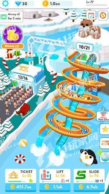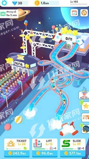 2、在游戏初期,玩家只能建造基础的水上滑梯,但随着等级提升,更多设施将解锁。你可以根据自己的喜好设计滑梯的形状和路径,尽情释放创意。