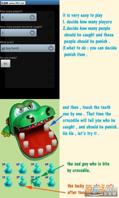 挺有意思的一款休闲聚会类游戏,玩法有点类似之前很火的《taproulette》,主要是在考验玩家的运气,操作简单,随时随地想玩就能玩,快来下载,让鳄鱼帮助你来做决定吧!
