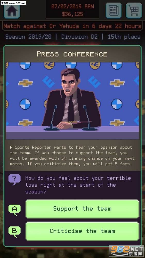 一款经典像素画风的足球经理人模拟游戏,玩家要做的就是成为顶级足球运营者,维护基地建设,招募球员,带领团队参加各种赛事,赢得好名次,提高足球团队的声望,培养更多的足球明星,打造世界顶级足球赛事,获得更多的利润,带领自己和球员走向全世界,成就球坛上的神话,还等什么,赶紧来加入这场神话缔造的空间中来吧。