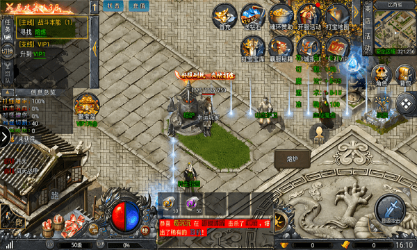 3、万人同屏在线互动,带你体验非常超大壮观的攻城场面,再现经典热血传奇。