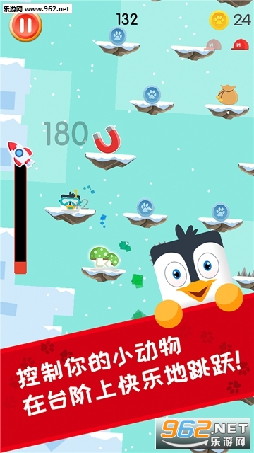 控制你的小动物,在台阶上快乐地跳跃,躲避各种机关障碍,穿过不同的场景,努力达到前所未有的高度!