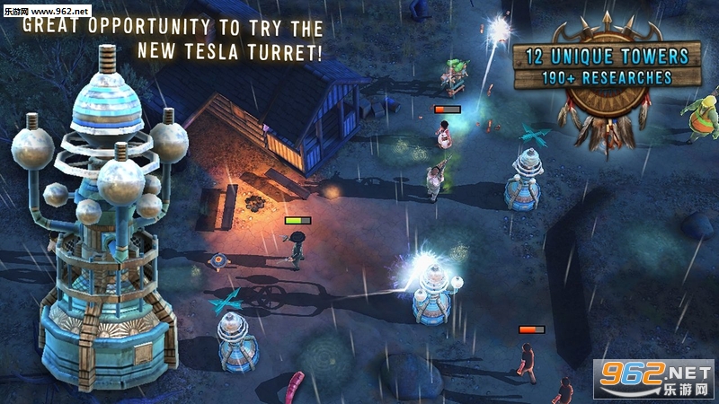 12层不同的塔楼,使每一个独特的研究树更加强大!使用从箭头炮塔到迫击炮弹或具有特斯拉线圈攻击僵尸。