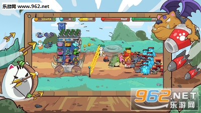 一款横版塔防类游戏,不过你只需要将一个塔楼上安排足够的防御猫咪们便可以了。