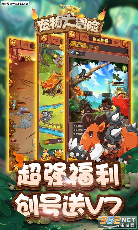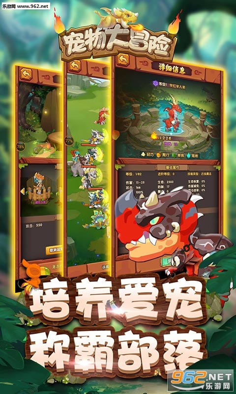《宠物大冒险》以远古部落为背景,以挂机休闲游戏为借鉴标准,为玩家提供多种乐趣类型的特色闯关及多元宠物养成搭配玩法,力图在原始人文明的游历和成长中让玩家体会到宠物肩并肩,赤手空拳地战斗。游戏操作简单便捷,十分注重用户休闲体验,游戏除了有可爱的人物造型,轻松的战斗模式,还以多种特色的宠物收集、宠物进化、部落建设、氏族互动、资源争夺等玩法让玩家获得不同的游戏体验。