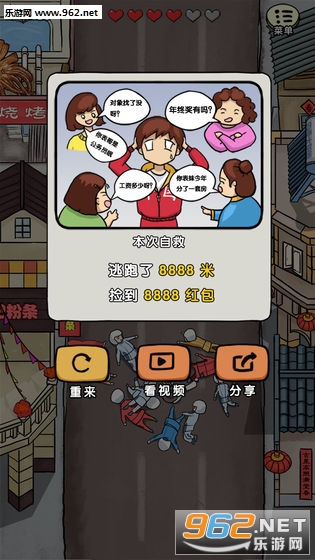 3、面对我们的七大姑八大姨们的疯狂问候,你将需要竭尽全力的对它们进行躲避!