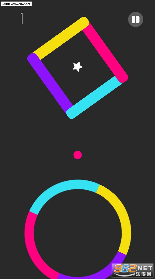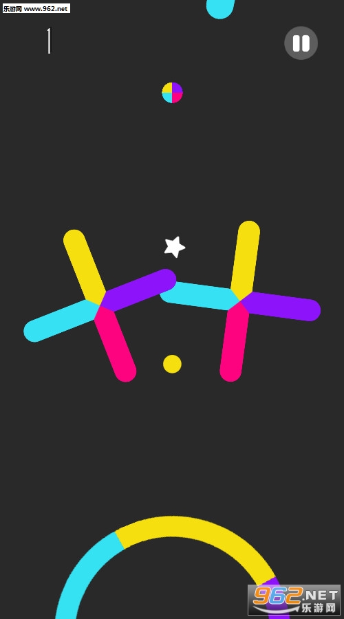 1、在游戏中要不断地点击屏幕,操控小球通过相同的颜色。