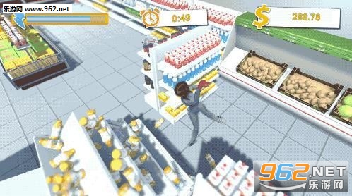 3、通过各种方式,你可以随意发挥,打倒放好的商品架和各种商品。