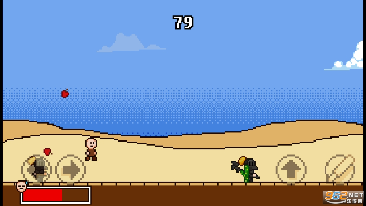4、左下角红色的代表玩家的血条,左右箭头控制玩家的前进和后退。