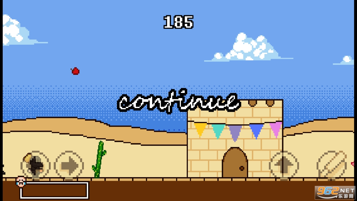 5、右边向上的箭头控制跳跃,棒子图标点击后可以挥动棍棒打飞苹果。