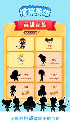 撑竿英雄将带给你欲罢不能的游戏体验。简单的操作,爽快的玩法,注定这是一款打发时间的极品游戏。在撑竿英雄游戏中玩家将帮助各路英雄:圣诞老人、蜘蛛侠、功夫熊猫等闯关探险。同时还可以和好友一比高下吧!帮助英雄的事怎么能少了你呢?现在就加入游戏和英雄们一起冒险吧!