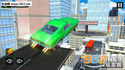 2、将城市交通完成搬至空中,融入特技玩法,遇到分断桥梁,跑车极速冲击,利用惯性才能到达下一个区域。