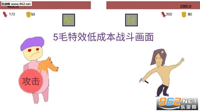 1、这里是由5毛钱打造的抽搐风格的回合制战斗,1VS1的战斗对决;