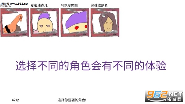 1.进入游戏就有四个游戏角色可以体验,不同的角色战斗方式不容;
