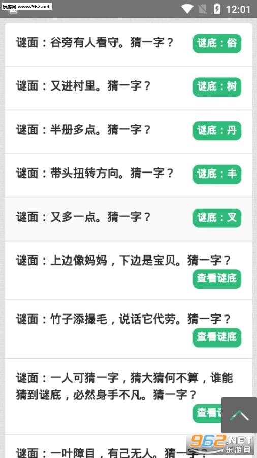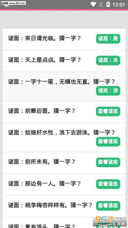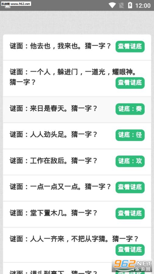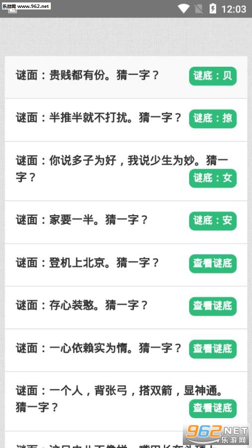 趣味的猜字谜游戏,游戏玩法简单,进入就可以看到大量的谜题,根据给出的语句才一个字,通常都是拆字猜,如果猜不出来可以点击查看谜底,喜欢的朋友可以下载试试。