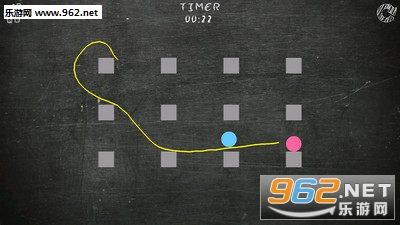 3、以黑板为游戏背景,给人怀旧的视觉感,红蓝CP球,与黄色的线,在黑板上非常显眼,避免画错线。