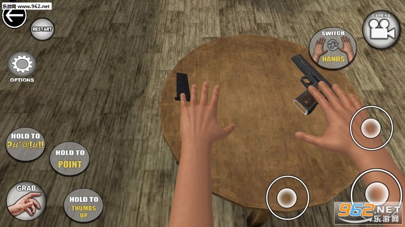 2、玩法规则是拿起桌子上各种物品,例如手枪、笔记本电脑、剪刀等等;