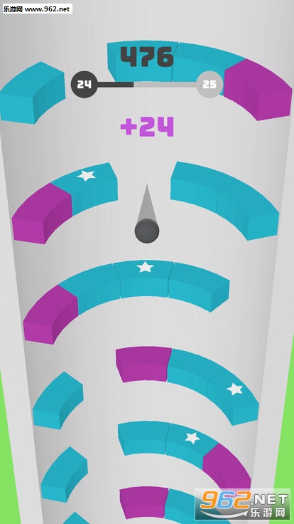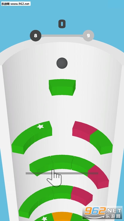 滑动屏幕,旋转平台,将球弹到底。