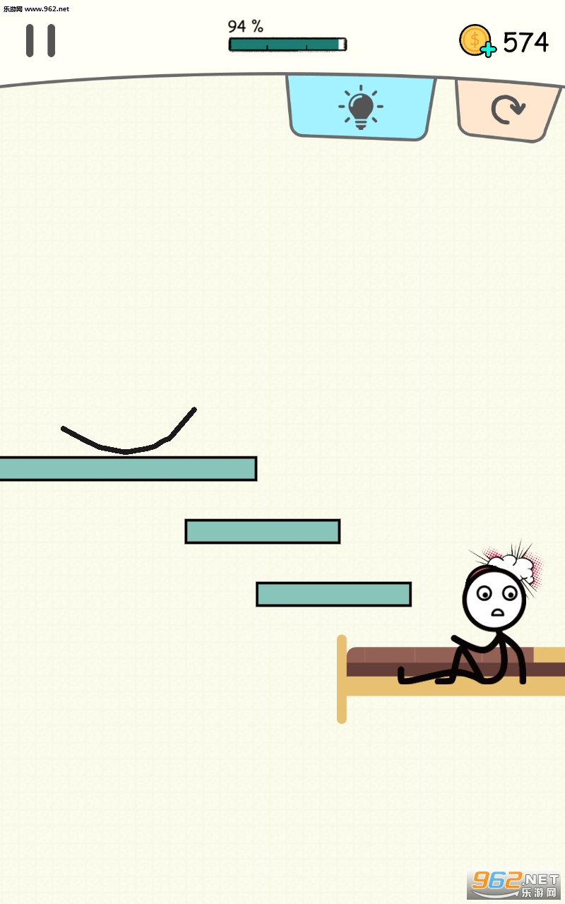 3、画出完美的图案,让球落地,从而唤醒S先生。通过线条的动作完成所有的任务!