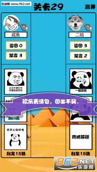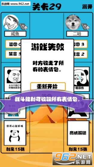 一款太有趣的斗图游戏了,表情包好丰富,斗图每一个表情包的陈列过程都觉得很搞笑,当中有很多是我们熟悉的,也有一些是最近出来的,斗图方式简单明了,摆放的方式相当直接,规则的设定很容易理解,其实也没有什么特别的玩法,感觉核心就是碰运气,当然也设计到一点策略,平常喜欢玩斗图的朋友这次让你玩个够。